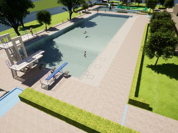Die Arbeiten am Freibad gehen nun mit Hochdruck weiter. Im Rahmen des Groß-Projektes wird ein Bereich des jetzigen Lehrschwimmbeckens zu einem Spraypark umgewandelt: Hier können Kinder von drei bis hin zu zehn Jahren erste Wasser-Erfahrungen machen - mit verschiedensten Spielgeräten und Aufenthaltsbereichen. Auch die derzeit stillgelegte Rutsche wird durch eine Erneuerung der Rutschenhalbschalen saniert und damit wieder nutzbar gemacht. Der Übergang zwischen Lehrschwimm- und Schwimmerbecken wird durch eine Sitzstufenanlage attraktiver gestaltet.
