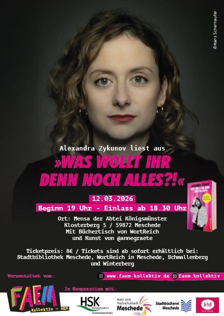 Am Donnerstag, den 12. März um 19 Uhr veranstaltet das neugegründete FAEM-Kollektiv - HSK eine Lesung in der Mensa der Abtei Königsmünster in Meschede.