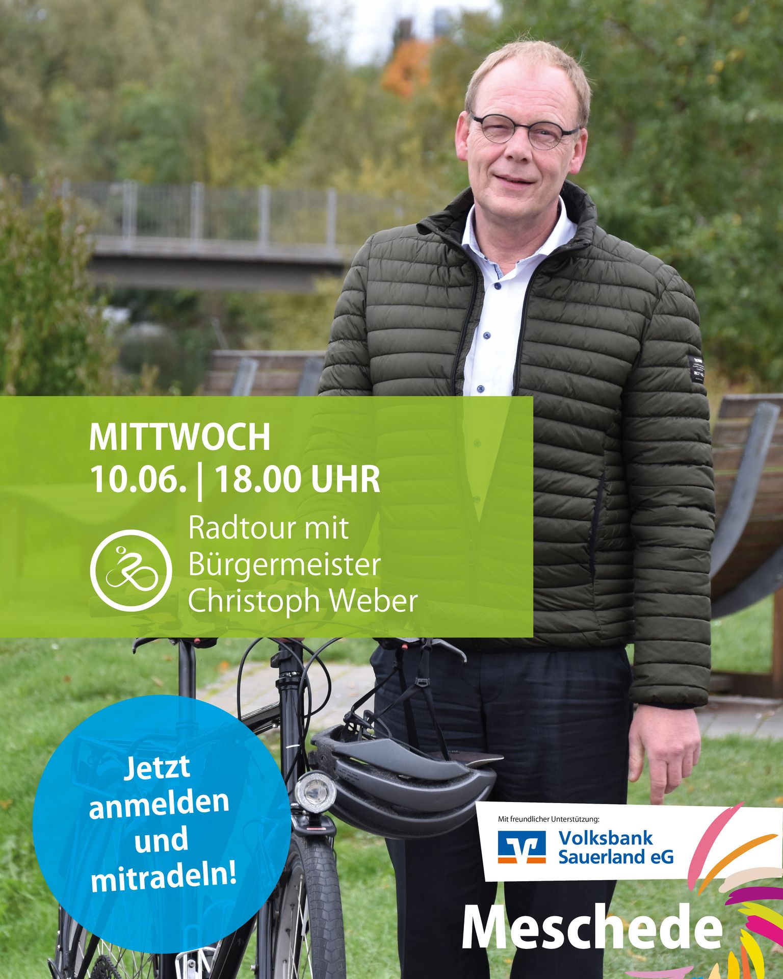 Alle, die in der Kreis- und Hochschulstadt Meschede im Hochsauerlandkreis wohnen, arbeiten, einem Verein angehören oder eine (Hoch-)Schule besuchen, können beim STADTRADELN mitmachen.