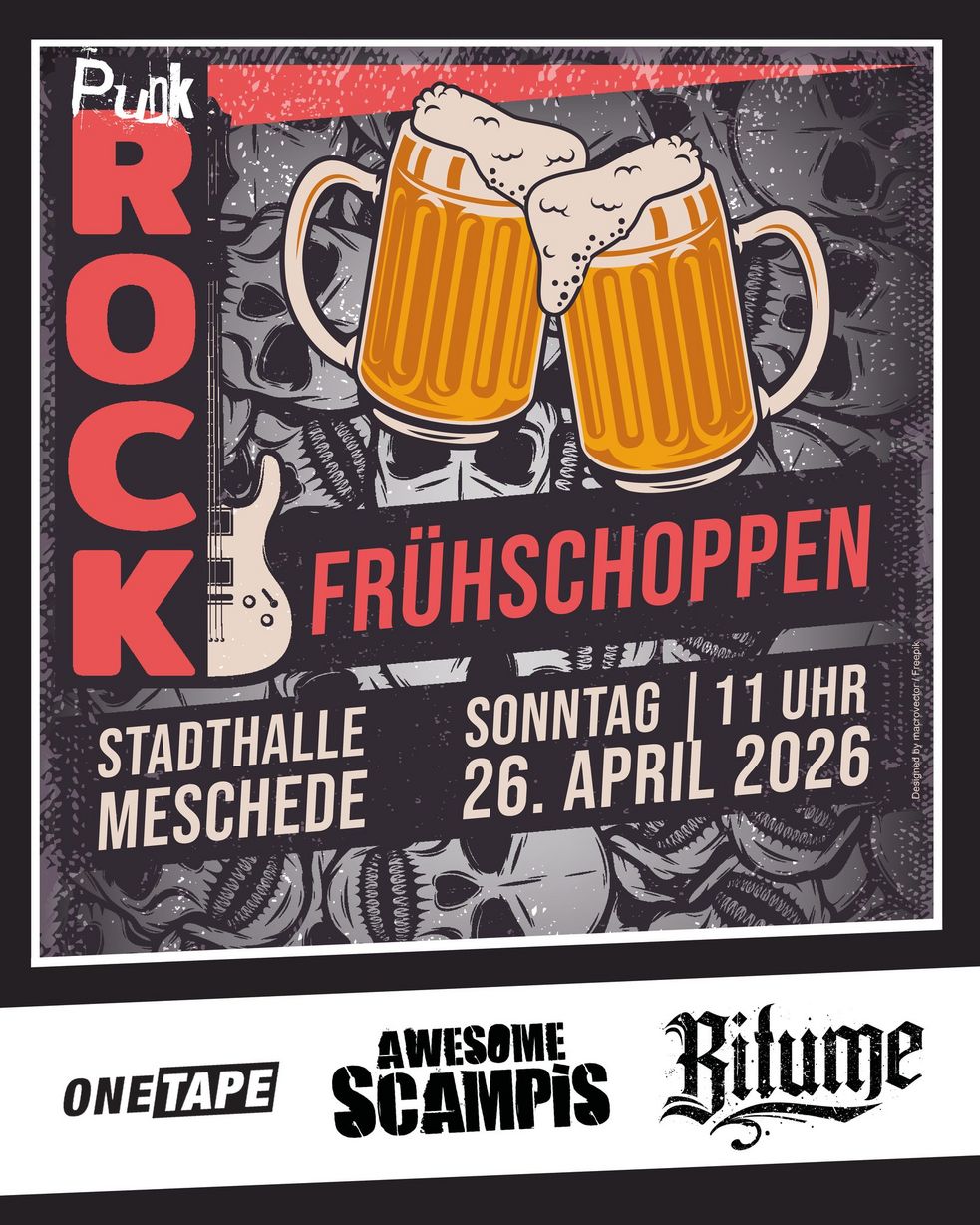 Am Sonntagvormittag gibt es wieder ein musikalisches Highlight der besonderen Art. Der 3. Punkrock Frühschoppen geht an den Start, dieses Mal dabei: „One Tape“ – „Awesome Scampis“ – „Bitume“. Punkrock, Ska, Tanzbar, Rock‘ n‘ Roll. Die Theke wird bestens bestückt sein, die frische Bratwurst vom Grill wird auch nicht fehlen und auf der Bühne wird die Lautstärke hochgefahren.